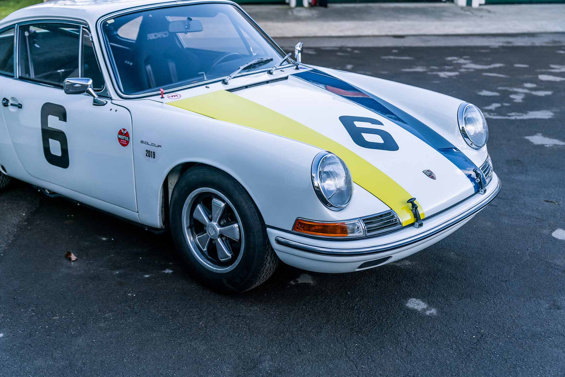 Porsche 911 chassis #305515 is well known on the European historic motorsport scene, having competed at the most prestigious events for much of the last 20 years. It was once owned by 1967 European Touring Car champion, Karl von Wendt, and is painted in his racing livery of blue and yellow bonnet stripes. It has run at the Goodwood Revival Meeting several times, Le Mans Classic and is in the correct specification to compete in the Peter Auto 2 Litre Cup for the 2025 season. It complies with the regulations for FIA Period F (Pre-66) and has a current HTP to that effect.